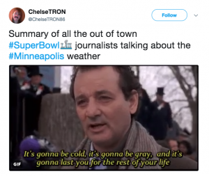 The Super Bowl has descended onto Minnesota bringing thousands of tourists to visit our winter tundra. Here are our 10 favorite tweets about tourists’ impressions of the Twin Cities. And yes, there is a lot of talk about the weather.