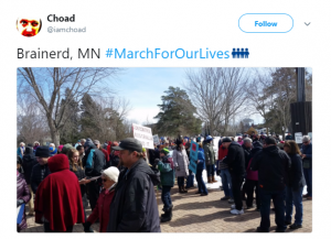 Several hundred people gathered for the march organized by Brainerd High School students, choosing to focus on the effort for universal background checks on gun sales. They told reporters that the adults in their lives had failed to make the difference, so they stepped up to make sure legislators would listen and so that they can feel safe going to school.