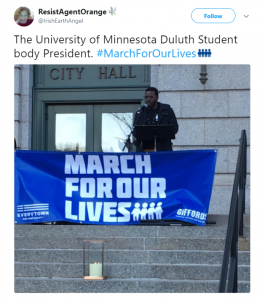 Downtown Duluth was flooded by hundreds of students and community members, demanding that their elected officials take action to prevent gun violence. The march was collectively organized by Duluth’s high schools and local universities, featuring speakers from the schools who were met with cheers from the growing crowd.