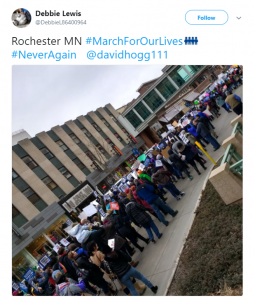 The march in Rochester was organized entirely by students, led by Century High School student, Anjali Goradia. They led people to Mayo Park and used the community event as an opportunity to register voters.