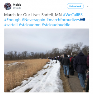 More than 300 people walked together carrying signs calling for gun safety in Sartell. They handed out flyers with steps people could take to create change, ending their march at First United Methodist Church, which opened its doors so that marchers could light candles in honor of gun violence victims. Their organizers made it clear that this demonstration was only the beginning. Minnesotans would use this momentum to take action and create change.