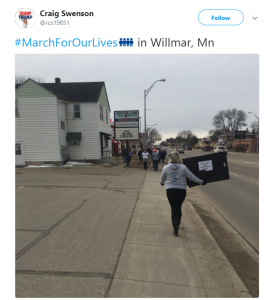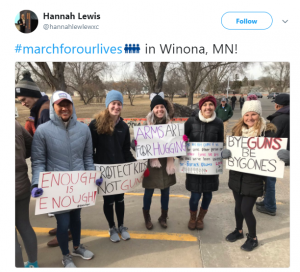 Winona students are so MN nice, they marched twice. They sent about 100 students to St. Paul for the march at the Capitol, then organized their own march for the following day. They wanted to make the event accessible to their neighbors in Winona who didn’t have the opportunity to travel to the State Capitol. No matter the size of your town, your voice should be heard by your representatives.