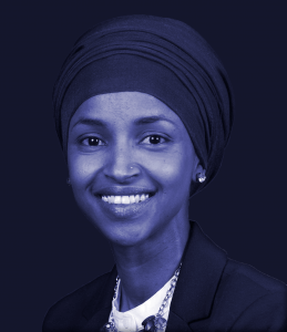 After serving two years in the Minnesota legislature as the nation’s first Somali-American elected to public office, Ilhan Omar was elected congressperson for Minnesota’s 5th district, making her the first woman of color to represent Minnesota in Congress. Omar has been an outspoken advocate for immigrants, refugees, and people of color in Minnesota, and is continuing that work in Washington.