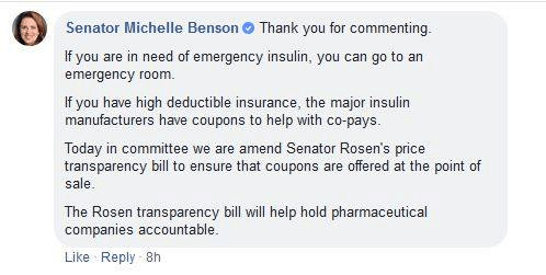 We heard from Minnesotans who pay hundreds of dollars out-of-pocket for their insulin every month with manufacturer coupons. We heard from people with diabetes who are still paying off their emergency room visits after being slapped with thousands of dollars in bills. Why isn’t Senator Benson listening?