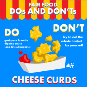 - The best cheese curds are at the Mouth Trap inside the Food Building.